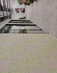 - De vloerkleden zijn gerecyclede vloertegels uit oude kantoorpanden. Van schimmels en paddenstoelen zijn lampenkappen gemaakt. Nieuwsgierig? Ze hangen bij de werkplekken en de ontvangsthal.
