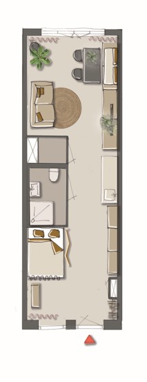 Benieuwd wat je allemaal met de studio’s kan? Onze binnenhuisarchitecte Sanne maakte alvast wat schetsen voor je. Neem alvast een kijkje in haar ideeën van de studio’s, de kleinere studio’s en de woon-werkstudio’s.