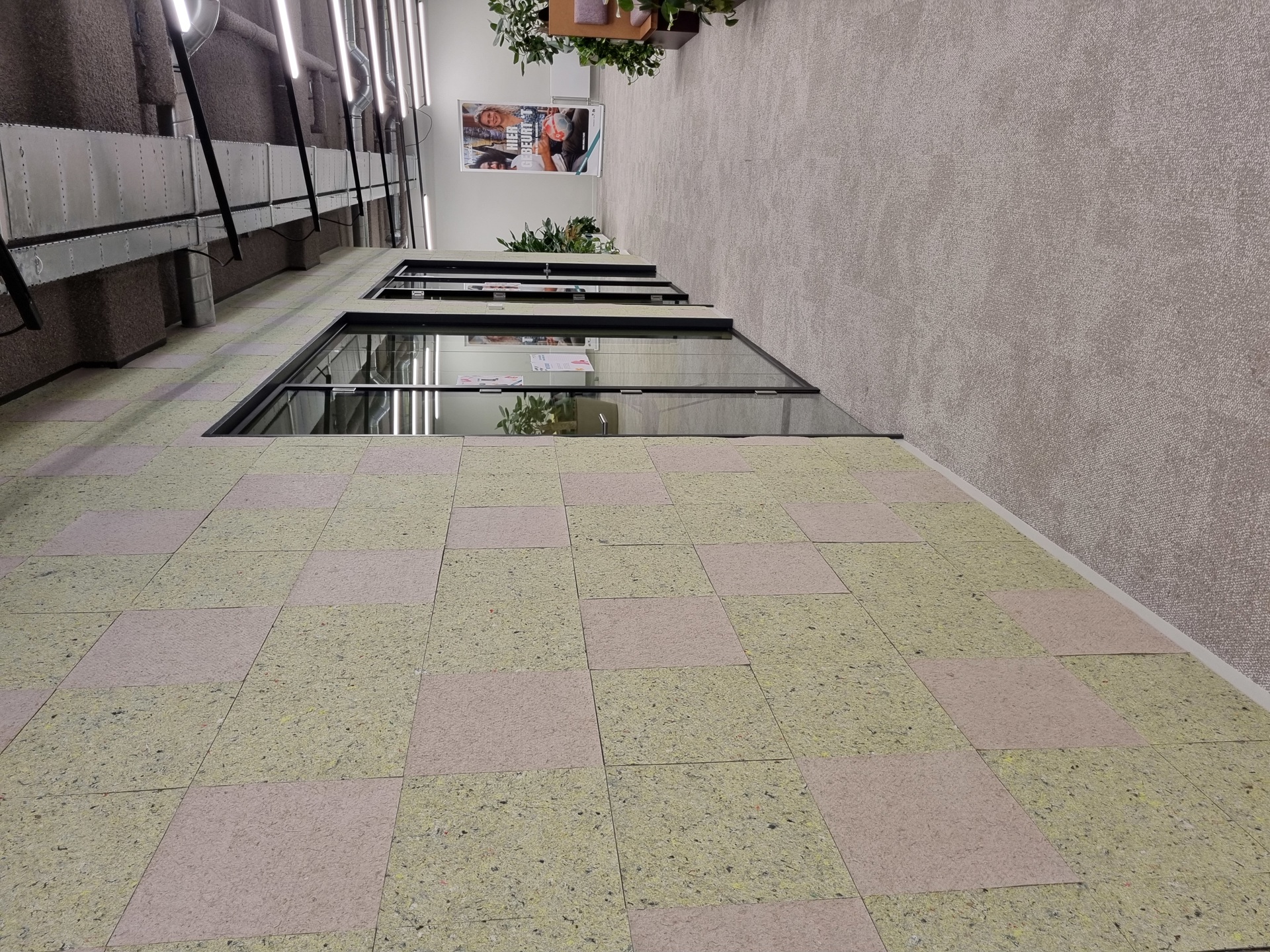 - De vloerkleden zijn gerecyclede vloertegels uit oude kantoorpanden. Van schimmels en paddenstoelen zijn lampenkappen gemaakt. Nieuwsgierig? Ze hangen bij de werkplekken en de ontvangsthal.